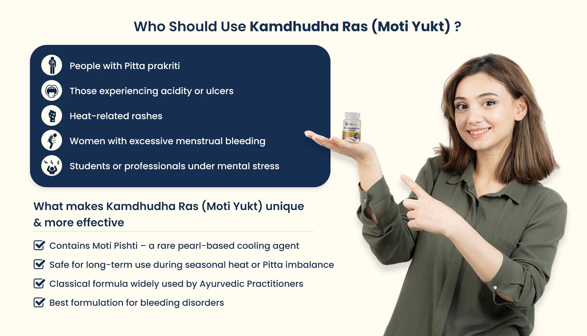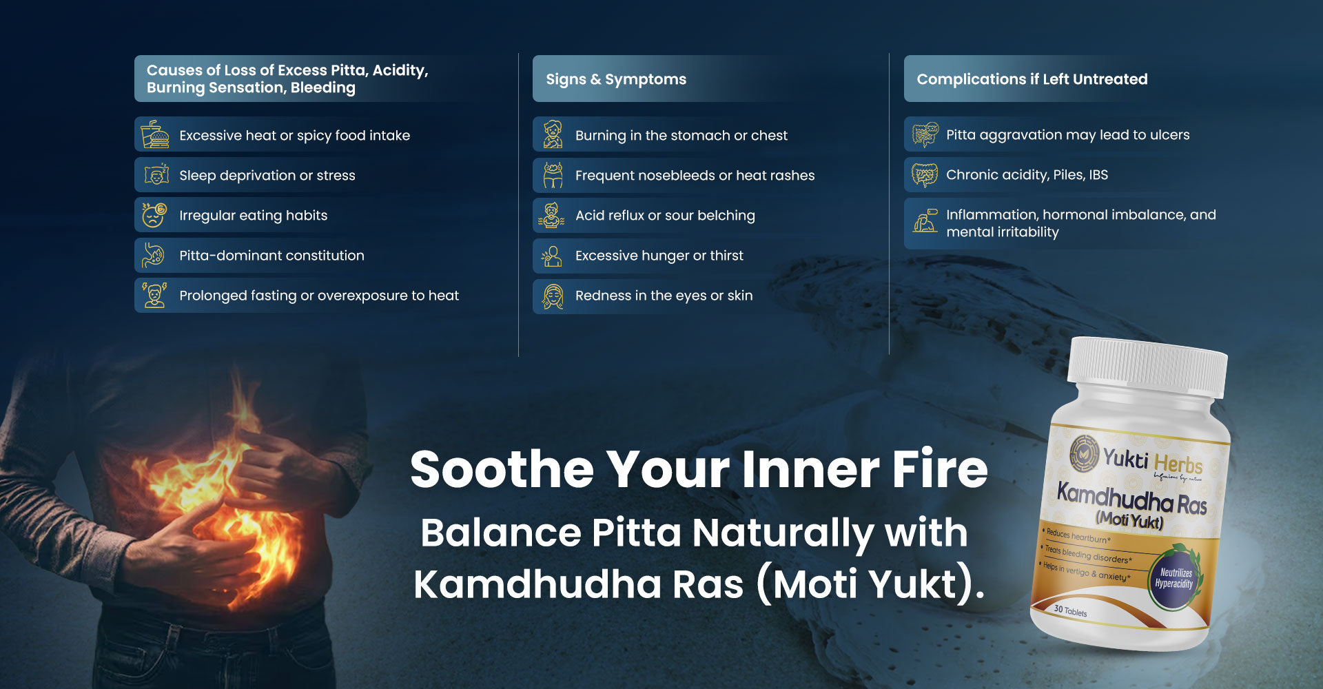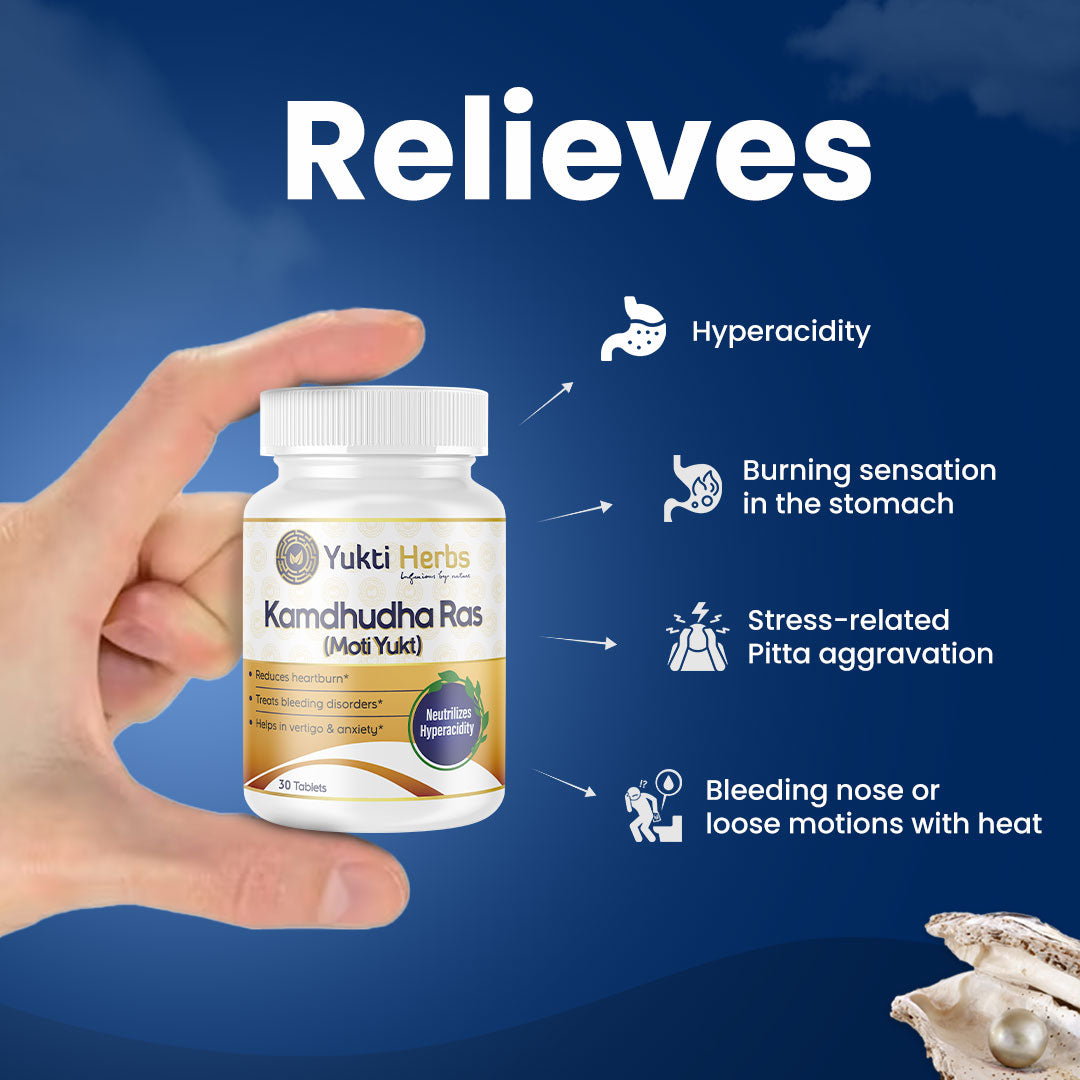 A traditional Ayurvedic formulation designed to pacify aggravated Pitta Dosha. Fortified with Moti (Pearl Calcium), it offers relief in burning sensation, acidity, excessive thirst, bleeding tendencies, and stress-induced heat imbalance. Trusted remedy for internal Pitta cooling.